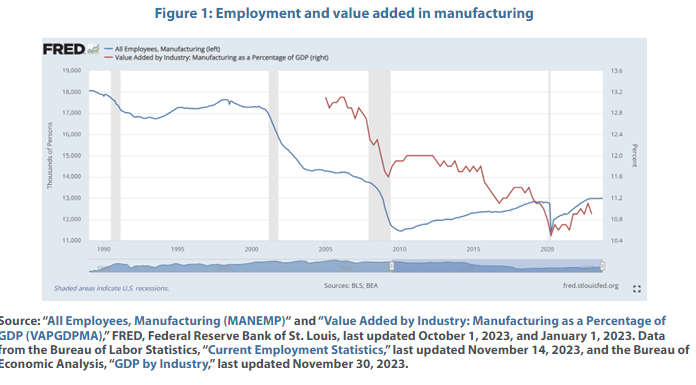 According to President Biden’s argument, this massive investment in the defense industry should have led to a revival of manufacturing in the US. This is definitely not the case.