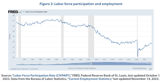 As American manufacturing declined, well-paying jobs for lower-skilled people also disappeared, reducing incentives for employment. Along with the exponential growth of welfare programs and government intervention in the economy, the decline of these incentives has contributed to a steady decline in the participation of Americans in the labor market.