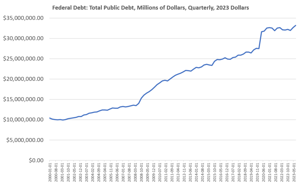 Many Americans have become numb to the amount of debt because they have been enjoying free money for too long. From the early 2000s to 2022, real interest rates were essentially zero (or even negative), meaning the federal government could borrow money at low interest rates.