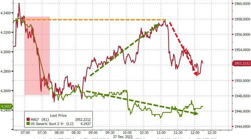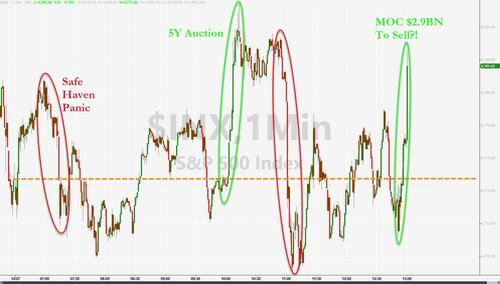 The S&P 500 rose in the strong 5-year auction (as yields fell) but turned it all around.