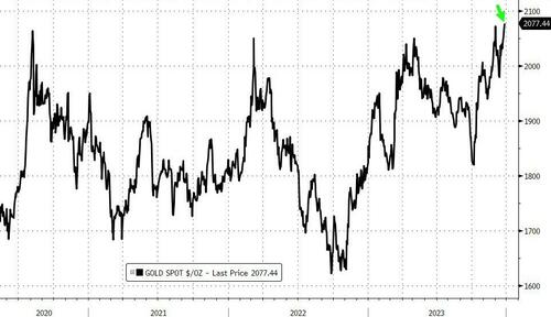 The dollar’s loss was gold’s gain as the precious metal soared.