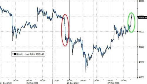 Bitcoin extended the rally back to $43,500.
