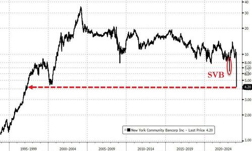 In addition, Moody’s warns that this whole situation could end badly: “Increased use of market funding may limit the bank’s financial flexibility in the current environment.” The house also points out that, as of December 31, 33% of NYCB’s deposits were uninsured and “could face significant funding and liquidity pressure if there is a loss of depositor confidence.”