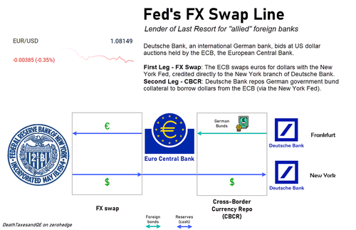 Through the Fed swap line, Deutsche Bank essentially borrows dollars from the ECB.