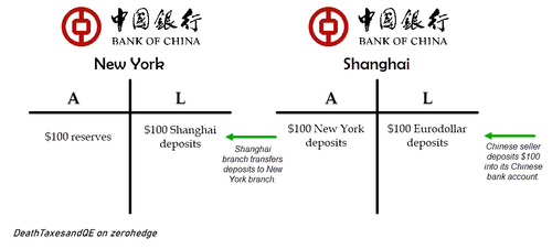These dollars, when deposited anywhere outside the US, are called “Eurodollars” (a misleading term, as they do not have to be in Europe). For simplicity, they could be called “Chinadollars”.