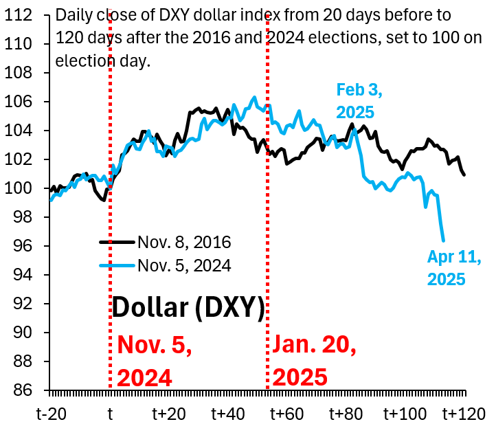 The dollar fell against most major currencies as markets reacted to the implementation of the reciprocal tariffs on Wednesday, April 2. The US dollar index fell below 102 twice on Wednesday, April 9, hitting its lowest levels since the presidential election.