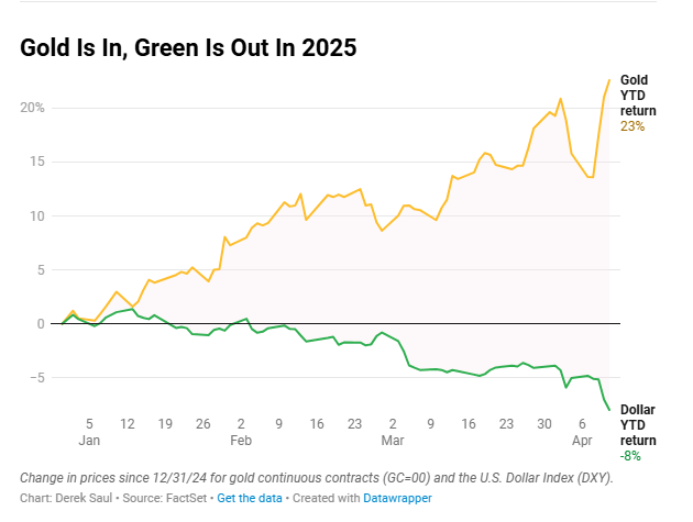 The ongoing tariff fall has triggered many such transactions, and now capital is being reallocated – some of it clearly flowing into gold.