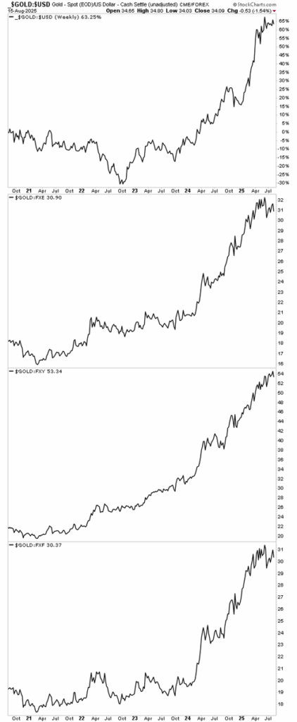 This is an important “signal” from the financial system. It’s one thing for gold to outperform the dollar, but seeing it outperform the euro, the yen, even the Swiss franc, is of systemic importance.
