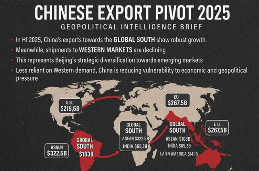 Together, they form a mercantilist superpower that is reshaping the global economic game. In the first half of 2025, China’s exports tell a story: the Global South is now the hottest market, while the West is left out.