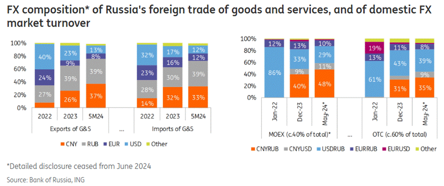 While hard statistics are lacking, anecdotal reports suggest that renminbi, UAE dirham and rupee are widely used in energy deals. India now pays Russia in rubles and rupees. The Chinese yuan is the real heavyweight here — Russian foreign trade now prefers it over the dollar, thanks to the Bank of Russia hoarding yuan, which already makes up 22% of its foreign exchange reserves.