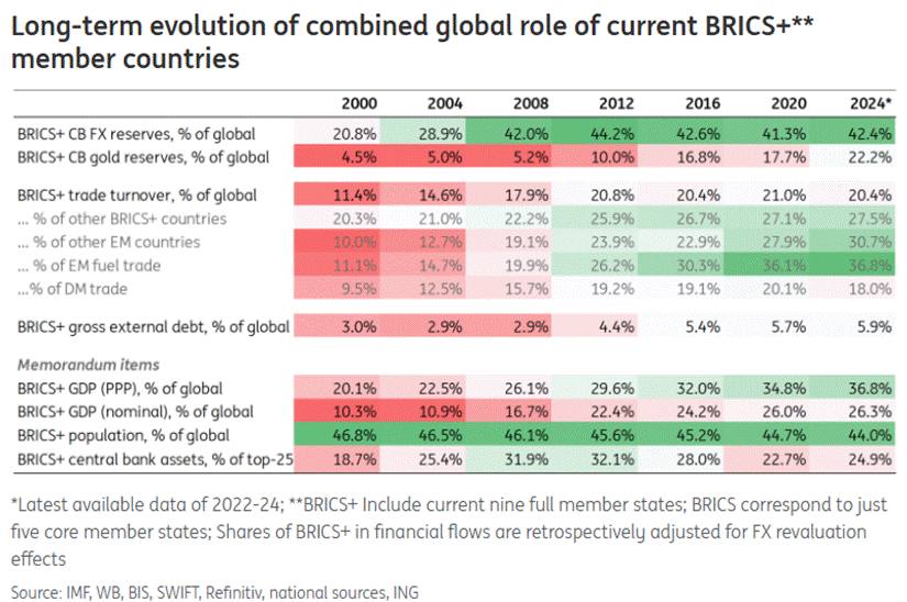 A key obstacle? BRICS+ countries hold just 6% of global external debt, compared to the US’s hefty 21%, making it difficult for their currencies to become truly global.