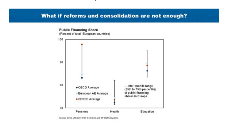 “If reforms and medium-term fiscal adjustment are not sufficient, then more radical measures could include a reassessment of the scope of public services and other functions of the state, which could affect the social contract,” the IMF said.